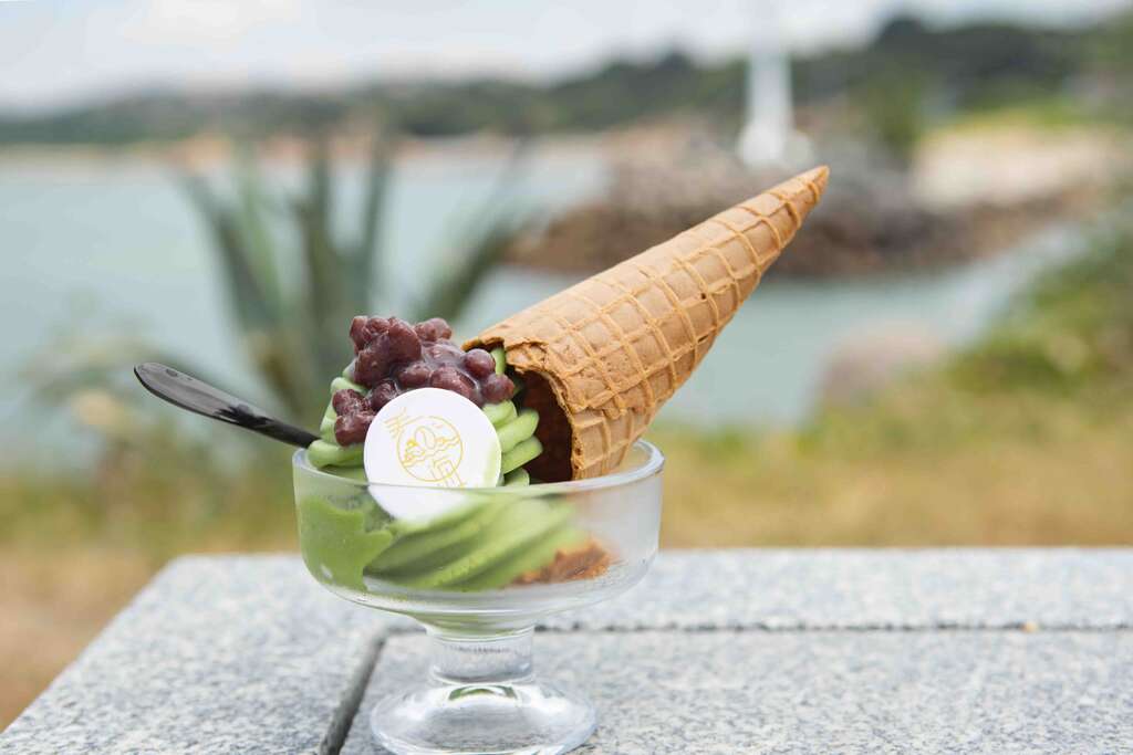「抹茶霜淇淋」 口感绵密且用料很丰盛,跟红豆真的是绝配,在室外吃也别有一番风味,有一种海岛上独自生活的美丽氛围感,吹吹海风吃吃冰,感觉烦恼都随风而去了!