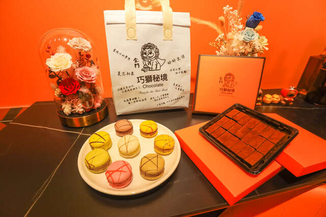 巧狮秘境的「金门高粱85%生巧」选用了金门高粱与小金门蜂蜜,带来浓郁酒香与柔滑巧克力口感,搭配法国鲜奶油和金门青草地牛奶,释放微醺余韵。另有「微马卡系列」,包含覆盆子、巧克力、海盐焦糖等九种经典口味,外脆内浓,色彩缤纷,兼具美味与视觉享受。