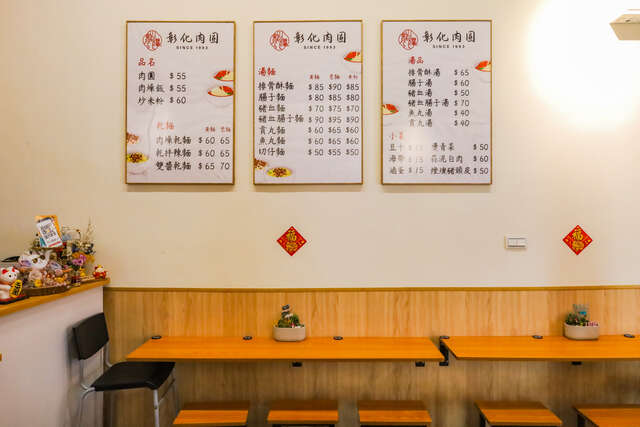 餐点:肉圆 / 肉燥饭 / 炒米粉 / 汤面 / 干面 / 汤品 / 小菜