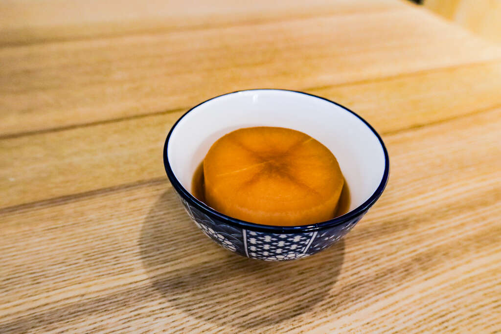 这里的汤头,以昆布与柴鱼片细火慢熬,汤色清澈,甘甜醇厚,是一碗看似平凡、却蕴藏心意的好汤。而每一道关东煮食材,更是店主亲自跑遍台湾头到台湾尾,从各地严选而来:基隆的吉古拉(竹轮)、淡水的阿给、新竹贡丸、高雄旗津的旗鱼黑轮、屏东东港的鱼丸,甚至还有来自韩国的道地鱼板。一碗热汤,承载着来自不同乡镇的风味,也装满了对「家」的记忆与故事。