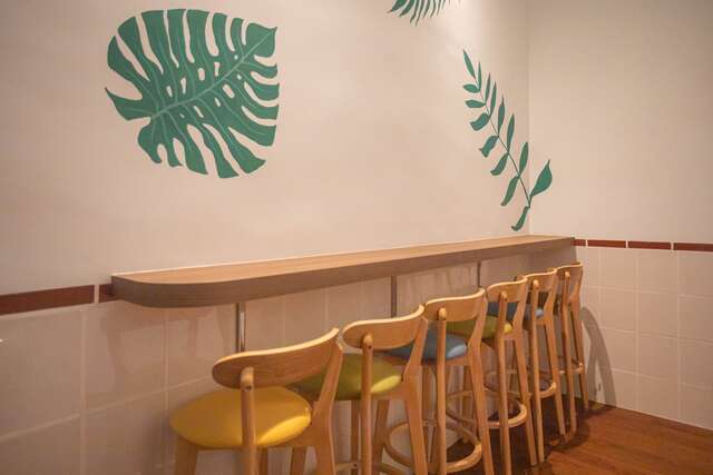 公共休息區 若有外帶金門美食,可至此區用餐,繽紛俏皮的牆面彩繪跟跳色高腳椅,是個靜謐可以好好享受美味食物的區域。