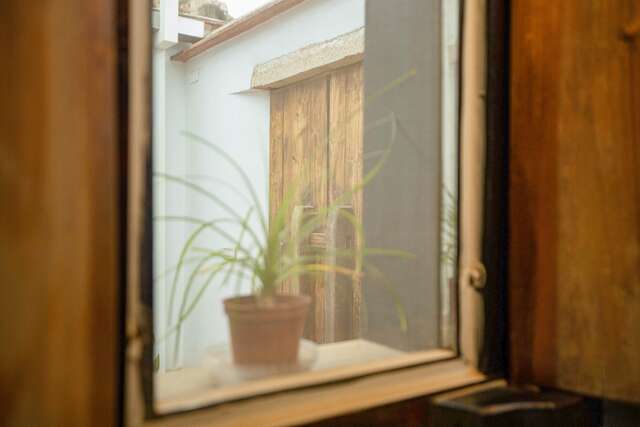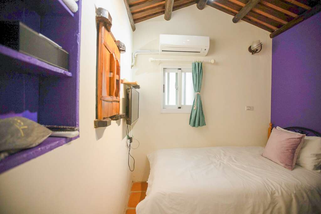 「天井單人房」 一般民宿較少見的單人房型,一共有三扇對外窗,其中之一是傳統木框,由內向外看去別有一番風味~
