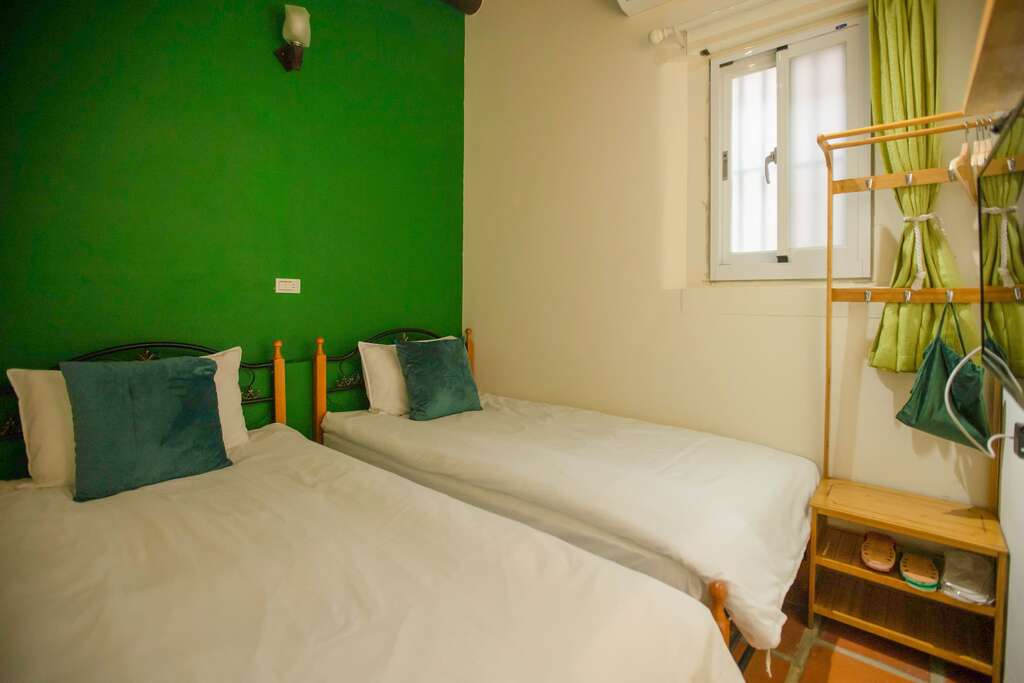 「雙床房」 翠綠色系的配色,綠意盎然的氛圍很適合友人一同入住,緊靠但獨立的床墊可以暢談整夜,同時也不用擔心動作太大而打擾到同伴。