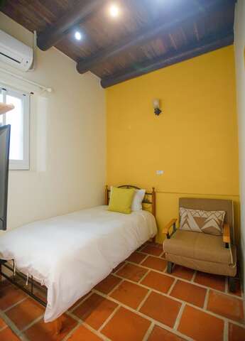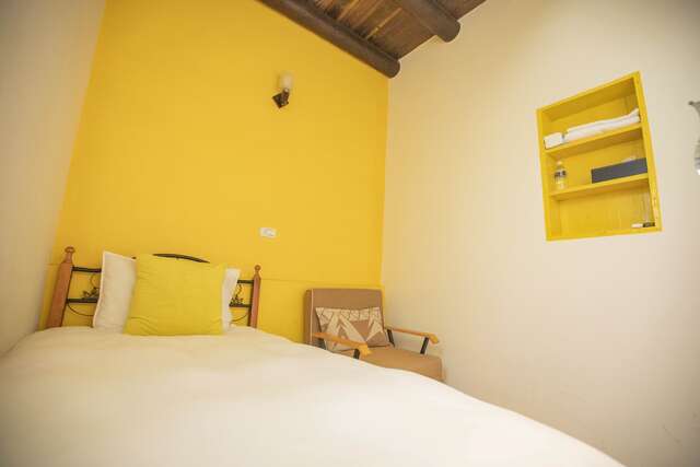 「繽紛單人房」 亮眼的鮮黃色超吸睛,踏進房間讓你擁有好心情~ 一旁的沙發椅還可打開變成另一張床呦!