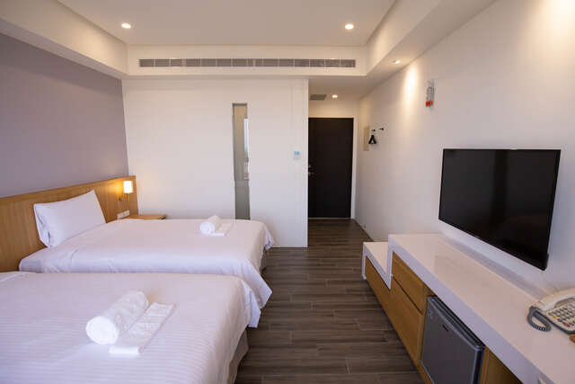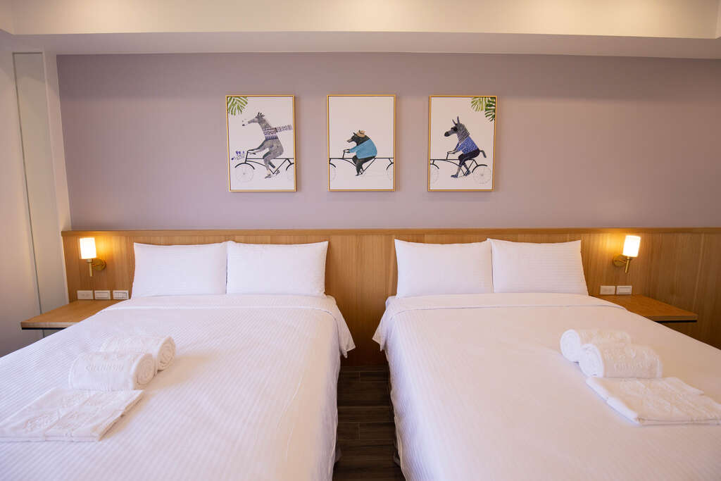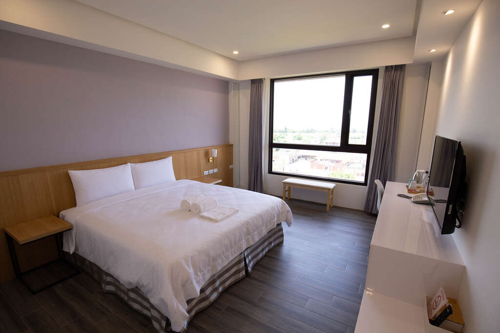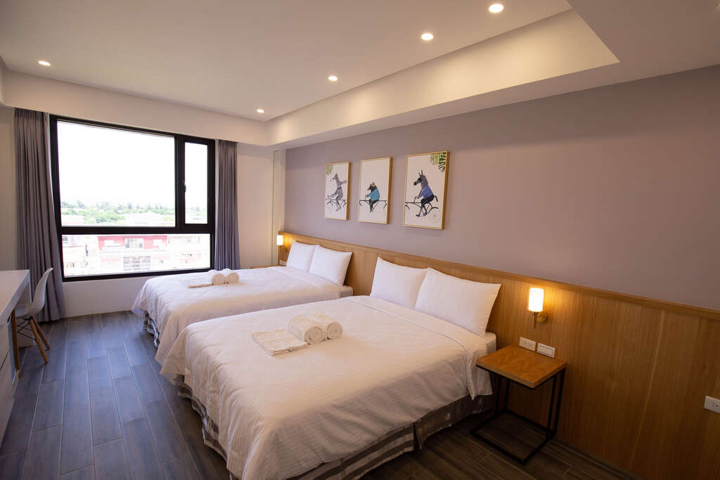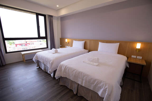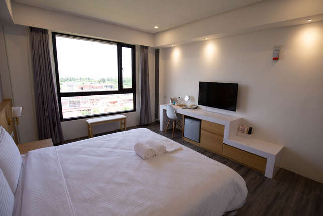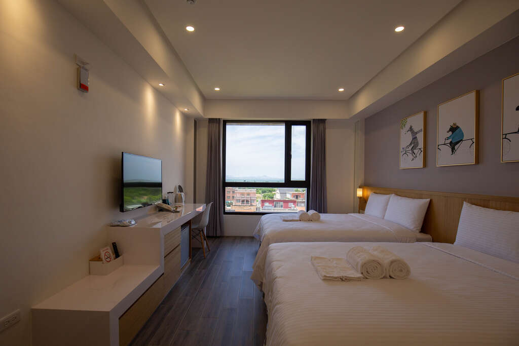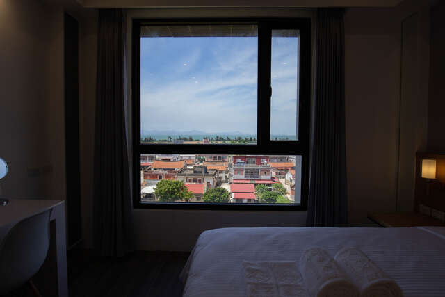 簡約的設計風格,輔以莫蘭迪色系、落地窗景搭配,營造清爽明亮的舒適空間,感受旅行的悠閒氛圍。