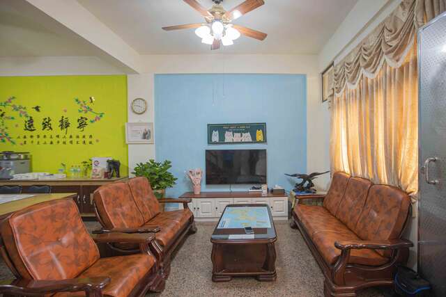 交誼區可容納多人,接待團體也沒問題!若有聚會、商務需求,這裡也非常適合!後方的茶水區有提供免費小零食跟茶包等食品,入住後可自由取用。