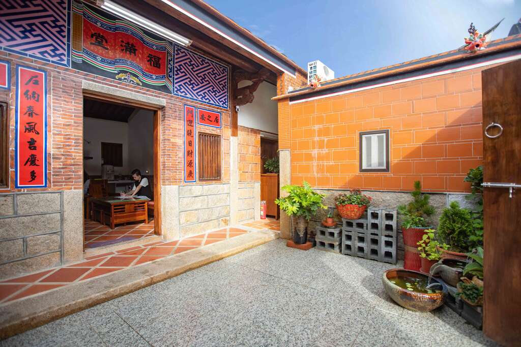 踏進木製大門是古厝的天井,民宿主人將環境打理得整潔舒適,橘紅色的磚瓦配上綠植點綴,氛圍感非常好,彷彿時光倒轉~