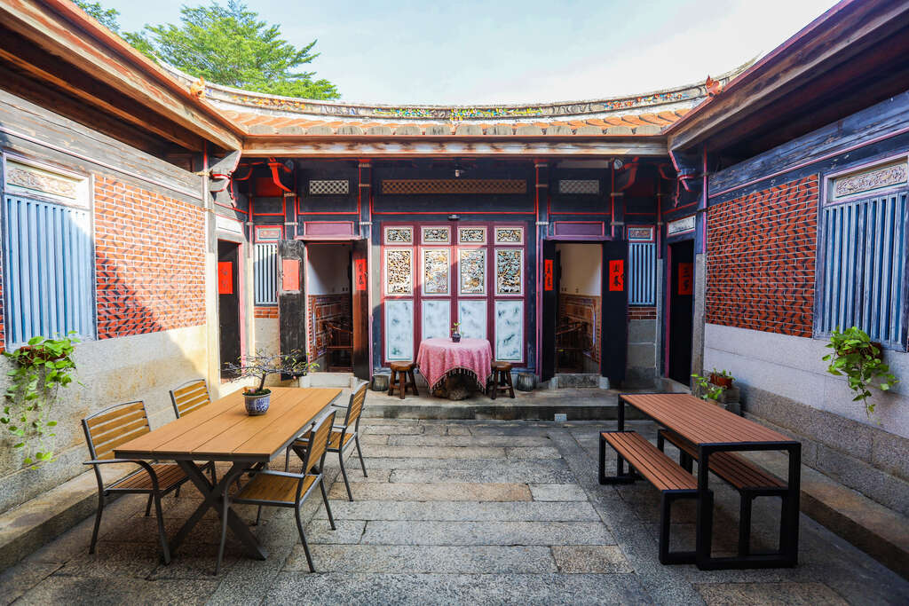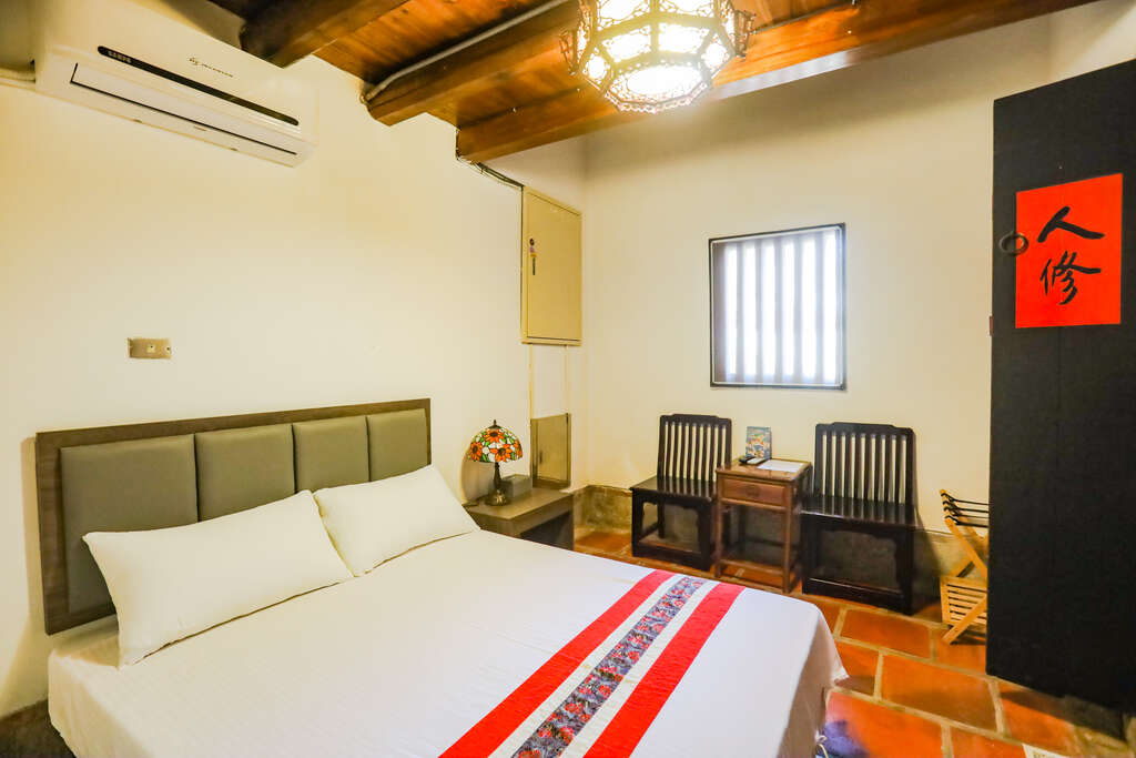 四季行旅位於水頭聚落之中,由閩式古厝修復改建而成,是典型的雙落大厝,民宿保留了原有的磚牆、燕尾脊與木構屋架,牆上的陶偶藝術、手繪壁畫與古典木質傢俱,打造出一處溫柔沉靜又不失品味的旅宿空間。
