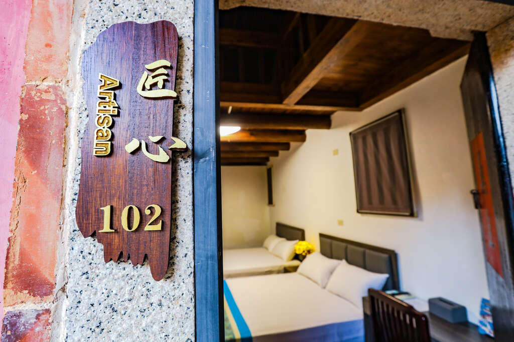 每間房以「高粱酒」為名,如「陳香」、「經典」、「匠心」等,承載的不只是房名,更是一份對金門釀酒文化的致敬。