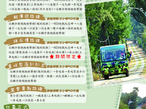 行程類型: 城鎮古蹟、自然生態、戰地風情、導覽小旅行