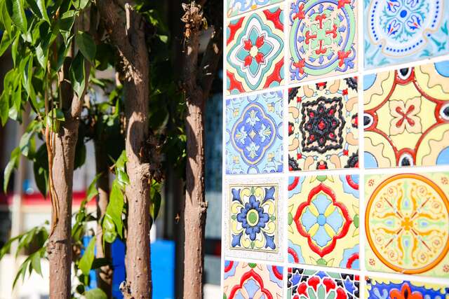 這個花磚巷不是指貼滿花磚的地方,而是用花磚造型噴畫出顏色繽紛花磚來裝飾