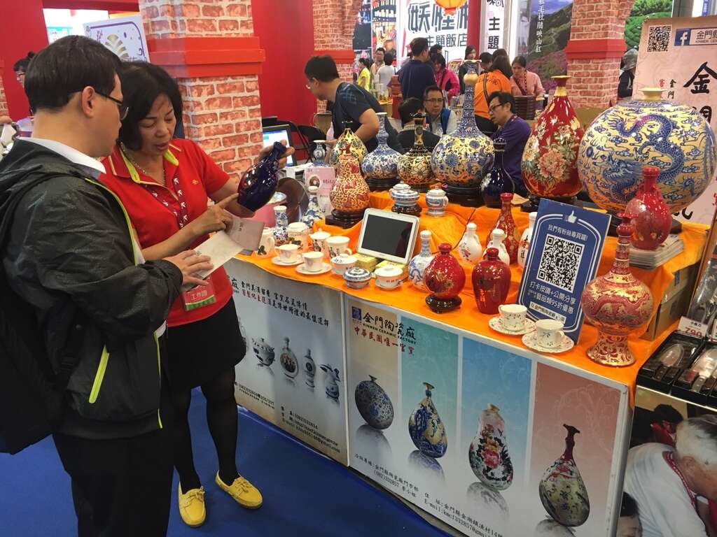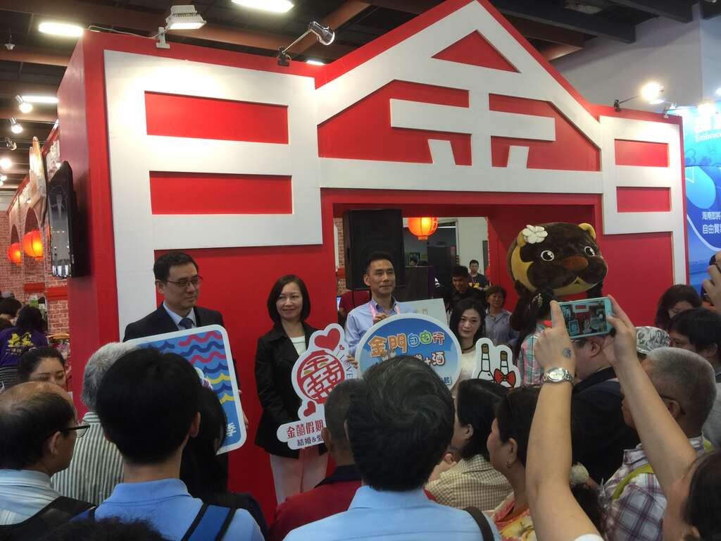旅展開幕首日,金門館也將大家最愛的金門特產帶到旅展會場讓民眾親自品嘗,包括在世界烈酒大賽獲獎的金門高粱酒,以及部落客口耳相傳來金必買的貢糖、麵線、一條根、牛肉乾。為刺激金門館產品買氣,金門縣政府觀光處陳美齡處長、金門旅行商業同業公會林永標理事長與金湖飯店白國良副總現場加碼送台金來回機票、金廈往返船票等多項好禮。此外,金門飯店業者、民宿業者、旅行業者更到場共襄盛舉,齊心力挺金門縣觀光。