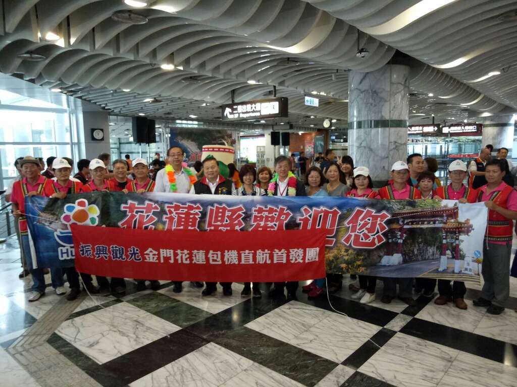 由金門縣旅行商業同業公會與遠東航空公司合作,辦理金門包機首航花蓮三天二夜之旅,首發團昨日由縣府秘書長林德恭領隊啟程,共滿載165名旅客展開花蓮之旅。花蓮縣政府觀光處專員林佳陵帶領160人順利抵金,提供往返金門、花蓮的旅客,更快速又方便的飛行體驗。期盼能促進金門、花蓮兩地的觀光。