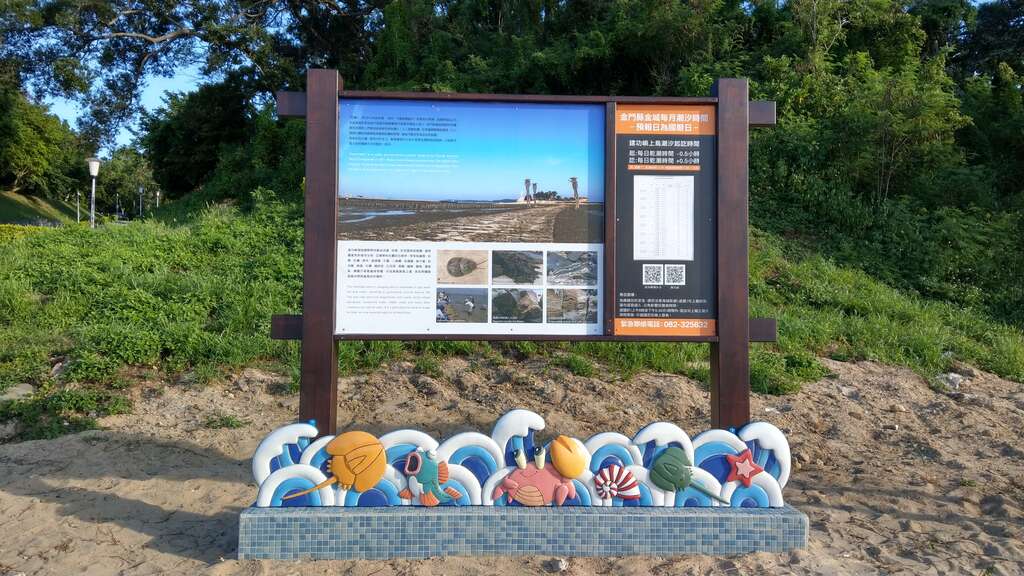 素有金門版「摩西分海」之稱的特色景點-建功嶼,先前因遭遇百年僅見的「莫蘭蒂」強颱侵襲,遭到嚴重破壞,為顧及遊客安全,縣府觀光處於颱風過後立即進行勘災及封島進行復原工作,並已於107年2月重新開放上島,另考量建功嶼為本縣重要觀光景點之一,為提升景點服務品質,及考量當地自然生態維護,特別採減量設計,整合多處解說設施,以海洋意象結合當地生態物種(包含彈塗魚、鱟、招潮蟹、螃蟹等),利用陶塑重新製作解說設施,營造建功嶼生態的趣味性及增加其觀賞性,該解說設施除整合多項解說資訊外,其內容亦設有雙語解說及潮汐表等登島資訊,提供遊客更完善的服務。