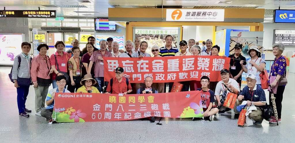 金門八二三砲戰六十週年憶遊團,昨日上午由團長李麒麟帶隊,與一群曾經在金門服兵役的老兵,甚至是參戰的戰友們、親屬朋友一同組團來金,將進行三天兩夜的金門之旅,其中還將參訪這群老兵們當年服役的營區,尋找舊時的老記憶。