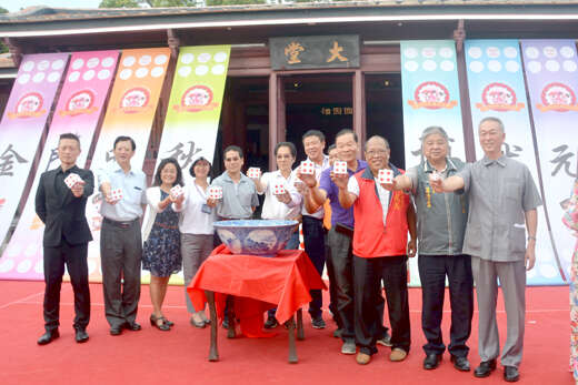 2018金門中秋博狀元餅活動昨日下午假總兵署舉行啟動儀式,由金門浯江舞蹈團編排融合五鄉鎮特色的舞蹈精彩開場,縣府參議許寬、福建省政府秘書長翁明志及到場縣府主管、議員、鄉鎮長等貴賓一同敲鑼開骰,為一連二十天的博餅活動揭開序幕,縣府歡迎邀請大家一起遊金門,體驗博狀元樂趣。