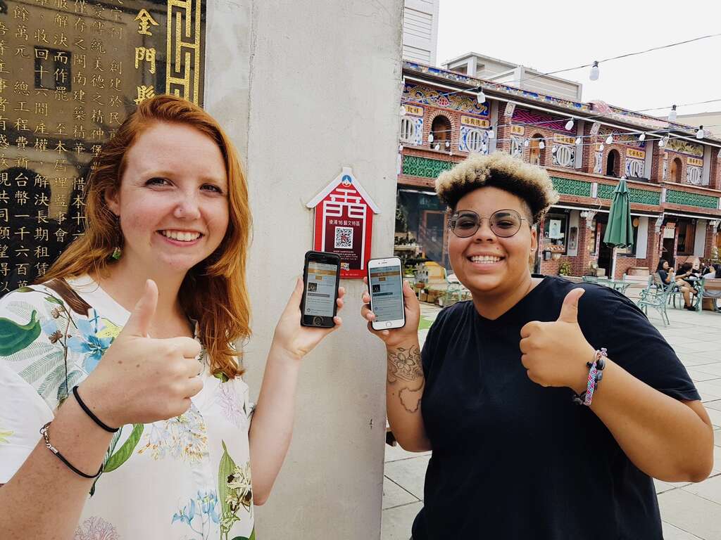 只要用手機掃描景區導覽牌QR Code碼,語音導覽便開始提供景點解說,這讓在金門擔任外師的Sarah及Esther大讚便利!Sarah及Esther去年透過傅爾布萊特基金會(Fulbright)選送至金門擔任英語協同教學助理(ETA),受觀光處邀請特來體驗這項新的導覽服務,兩人於體驗新的語音導覽系統後表示,這項新的服務能讓不熟悉中文的外國遊客來金旅遊時能更深入了解金門景點的故事,讓更多外國人願意到金門旅遊。