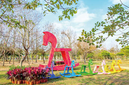 林務所森林公園,處處可見到員工創意巧,如超大型搖搖馬、大風車與鬱金香、繽紛棒棒糖等,以及廣受小朋友喜愛的橡果遊樂設施等,成為親子戶外遊玩拍照打卡首選之一;而農試所休閒農場的山櫻花逐漸綻開,加上大波斯及油菜花海,都引人入勝。此外,金沙鎮內官嶼、環島北路等一望無際的麥田風光,都值得鄉親,走出戶外欣賞體驗一番。