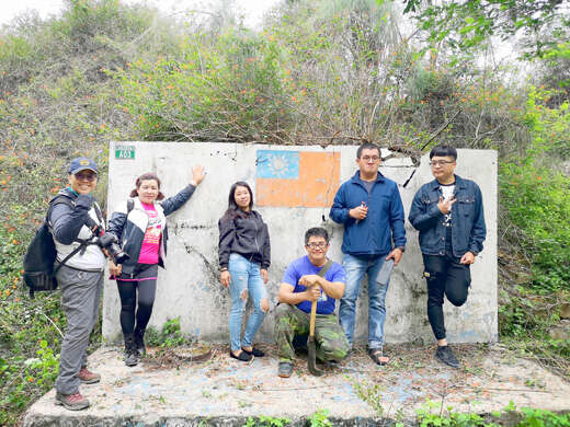 金門縣浯島秘境協會日前揪團探訪屬金門國家公園保護區的五虎山。在陽沙路通往五虎山的戰備道上走,中途捨大道而就小徑,跨過傾倒的樹木走在其間,一不小心就和懸垂的尺蠖、張著網的蜘蛛撞個滿懷,看到立在荒煙蔓草間的衛哨亭,就知道這裡以前是營區了。鑿得既寬且高的坑道,深邃地通往另一個世界,坑道頂的「虎威堡」三字早已斑駁,兩側書寫著「以國家興亡為己任,置個人死生於度外」,可以想見以前這裡任務之重。