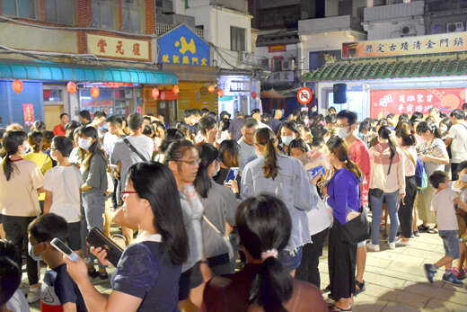 這項由後浦商圈及沙美商圈聯合舉辦的《英雄聚首~爭霸浯洲》博餅賽,將在中秋節當天迎來最高潮。後浦商圈的預賽於20日晚間在總兵署前廣場舉行,活動分五梯次開博,數百人在廣場分桌競賽,不少人抱回由參與活動的商店提供的彩品,活動也引來附近旅客的好奇,紛紛駐足觀戰。