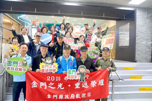 金門縣政府主辦的「2020金門老兵召集令」9月30日開始報到,返金申領專屬紀念品老兵絡繹不絕,甚至是由老兵自行組團響應返金旅遊,昨(23)日上午前陸軍總司令陳鎮湘親率23人團13位戰車群舊屬抵金,上午後續抵金的還有烈嶼638營70人團27位老兵,另上週金西師50人團21位老兵返金,近期還有海龍、金東師、南雄師等單位組團參加,輸人不輸陣,場面熱烈。
