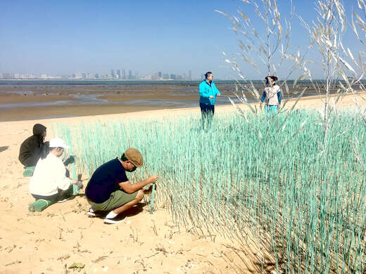 金門縣政府11月在國境之西烈嶼鄉舉辦「2020白色秘境單車海洋藝術季」,邀請地景藝術家團隊應用在地文化素材,創作八個主題地景藝術裝置,其中藝術家游文富25日邀請金門大學學生在上林海灘參與創作「春雪後」裝置藝術,將藝術創作變成藝術教育的延伸,八件地景藝術裝置作品自11月1日起在小金門烈嶼展出,歡迎民眾屆時前往觀賞。
