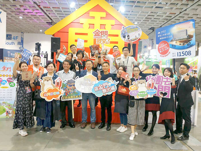 「台北國際旅展」自昨日起至十一月二日一連四天在台北南港展覽館舉辦,金門館(攤位編號K1708)於昨(三十)日中午十二時開幕,由縣府觀光處副處長許績鑫、金門縣旅行商業同業公會理事長林永標、金門縣金湖鎮公所鎮長陳文顧、昇恆昌股份有限公司副總經理白國良、金門縣旅館商業同業公會理事長蕭淑珍、各旅行社、旅館及特產業者等人到場共襄盛舉。