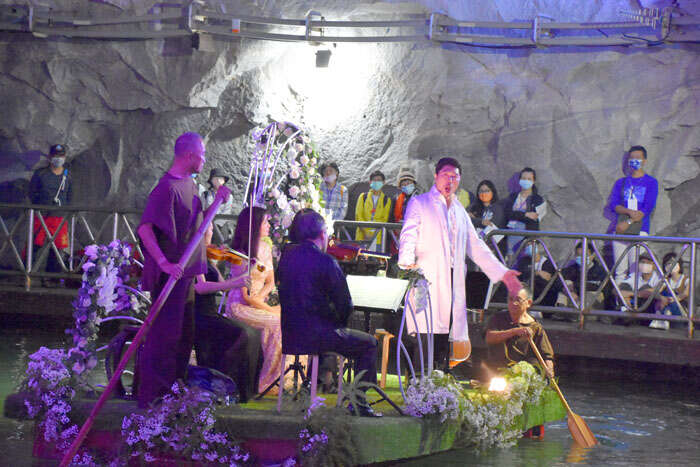 有別於以往,今年演奏舞台邀請花藝設計師榮孝洋特別設計,在有限的舞台空間裡以花藝裝飾,帶給觀眾欣欣向榮的希望。坑道水面上的燈,也含著為全世界祈福的想法。