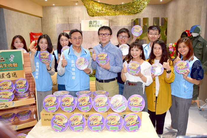 2020金門老兵召集令活動好康再加碼!味丹企業贊助2,000碗與金門超人氣名店「高坑牛肉店」聯名合作研發的「朕一品金門高坑牛肉麵」泡麵要贈送給來金的老兵,昨(27)日下午在尚義機場的金門形象館舉行捐贈儀式,由縣府觀光處副處長許績鑫代表接受,並頒發感謝狀予味丹行銷部經理程睿翔,感謝該企業起帶領作用,獲得老兵讚賞,也為老兵召集令活動尾聲再創高潮。