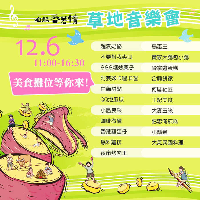 咱欸番薯情6日辦草地音樂會 打卡有禮相送