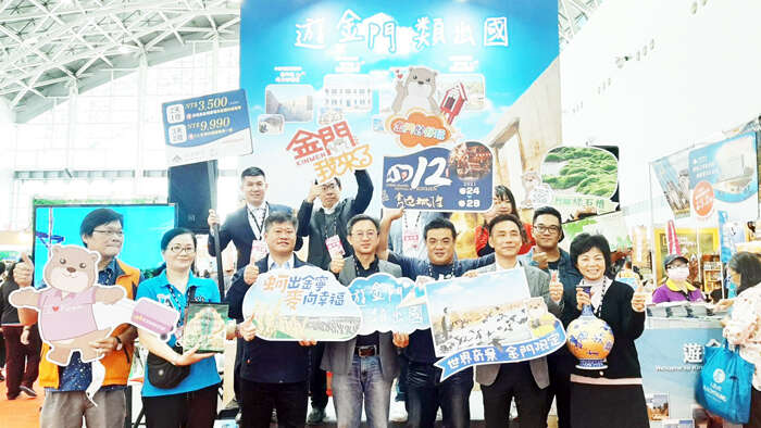 「高雄國際旅展」自昨日起至二十一日止一連四天在高雄展覽館舉辦,金門縣政府設置金門館(攤位編號特11)展位在上午十一時開幕,由縣府觀光處副處長許績鑫、金門縣旅行商業同業公會理事長林永標、金城鎮長李誠智、金寧鄉長楊忠俊、各旅行社及特產業者等人到場共襄盛舉,宣傳金門異國風情推「遊金門類出國」,還有超值遊程、滿滿的金門特產,以及打卡送好禮、好禮大方送等好康活動。
