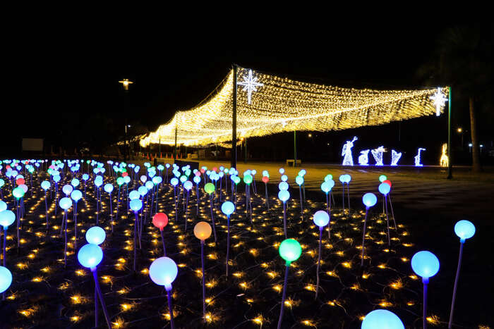 過往金門縣養護工程所於金城莒光公園、海濱公園(雄獅堡)進行燈飾妝點,今年度由於海濱公園城鎮之心以及莒光公園共融式遊戲場的施工,考量到燈景佈置遊客觀賞安全問題,無法進行燈光造景,本年度養工所選擇石雕公園作為燈景裝飾區並已完成妝點,為公園的夜晚帶來新風貌,歡迎鄉親、遊客到公園走走,拍照打卡留下美好時光的印記。