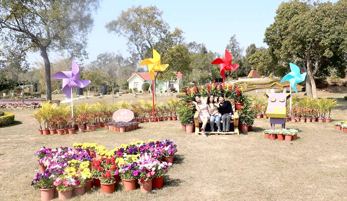 林務所近年來於春節迎新春活動推出大型木馬、木椅等造景,成為民眾遊園拍照打卡景點,今年除了有未演先轟動的金門公益電話亭吸引民眾拍照,位於小木屋旁的彩紅風車,在各類的花卉伴襯下,搭配木工廠精心打造的木椅,今年新春成為遊園民眾另一駐足新景點,親子或三五好友,在木椅上欣賞林務所美景,好不愜意!