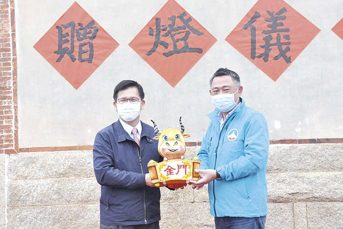 二○二一台灣燈會受國內新冠肺炎疫情升溫影響臨時決定停辦,金門縣政府第一時間主動積極爭取花燈移地金門展出,交通部樂於讓今年台灣燈會創作者未曝光的心血作品在金門呈現,相信燈會將帶來更多旅客。台灣燈會的花燈是眾多設計師、藝術家投入心血創作,交通部與觀光局希望花燈作品和努力成果沒有白費,花燈能在適當時機以適當形式呈現,也非常樂於配合金門縣政府,讓另類台灣燈會在金門首輪登場,歡迎國人拭目以待。台灣燈會-金門星光節贈燈儀式於昨天下午二時起,假金湖鎮轄區內的國定古蹟怡穀堂廣場舉行,由天震堂醒獅團表演的祥獅獻瑞揭開序幕;之後,交通部長林佳龍隨即把寫有「金門」兩字的牛年花燈贈予金門縣,由縣長楊鎮浯代表受贈,他們並一起發送交通部觀光局提供「活力牛」小提燈給在場的開瑄國小學童,林佳龍高舉著寫有「金門我來了」、「金門星光節」與在場貴賓和學童一起開心合影。