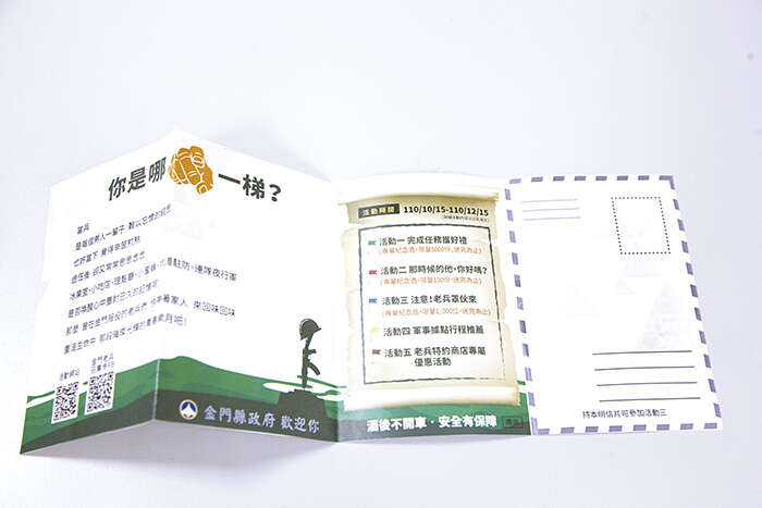 丁健剛指出,今年的活動已經在老兵各社群引起熱烈討論,活動一的「完成任務獲好禮」為老兵準備的專屬紀念酒,特別推出專屬活動的「酒標」,讓老兵們更有歸屬感、備感受到尊重。活動二「那時候的他,你好嗎?」更引發很多老兵話題,這個他,也許是老村長、也許是洗衣婦、也許是鄉間小店的女兒,老兵們躍躍欲試。活動三「注意!老兵罩伙來」,是以去年很受老兵歡迎的邀請卡為發想,今年在邀請卡上特別加入明信片的功能,讓收到邀卡的老兵可以寄送給親友,揪親友一起回金,分享這一份專屬金門老兵的光榮感。