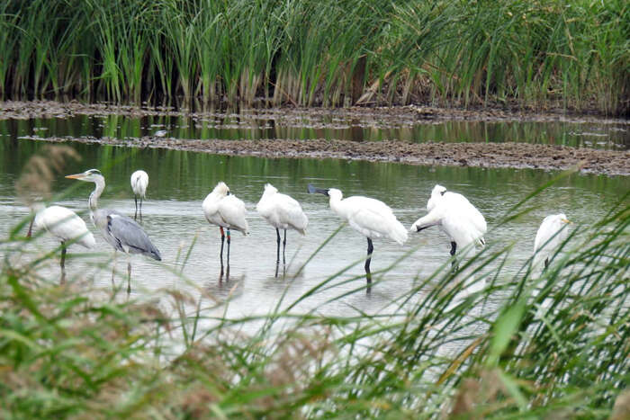 時序入冬,瀕臨絕種的嬌客—黑面琵鷺,現蹤小金門陵水湖保護區。鳥友洪萬福於陵水湖畔發現黑面琵鷺的蹤跡,以鏡頭捕捉八隻黑面琵鷺嬌影,其中有一隻腳環編號Y-61遠從韓國飛來小金門作客,讓鳥友很興奮。