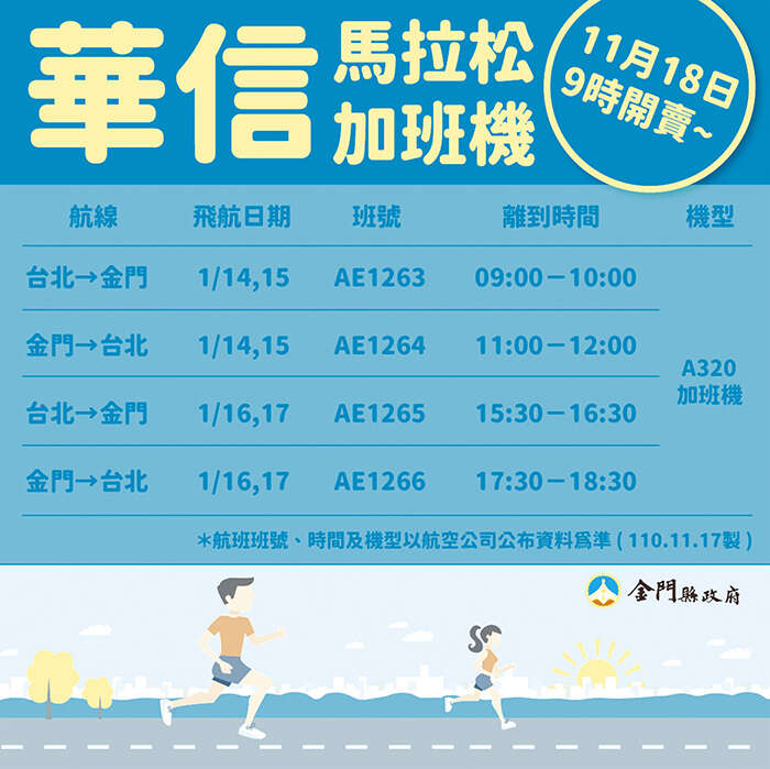 為金門馬拉松增加機位 2家航空今天統一訂票