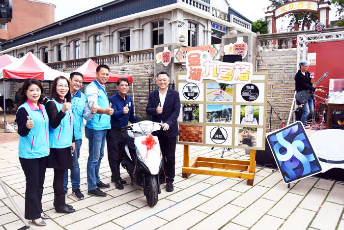 為振興金湖鎮觀光產業,金湖鎮公所延續去年舉辦觀光景點「九宮格」連線活動熱潮,今年再度舉辦「金湖九宮格2.0」活動,吸引6000多人參加,昨(28)日在陳景蘭洋樓公開直播抽獎,縣長楊鎮浯也到場抽出第一大獎機車一輛,並現場加碼一台電視當作縣長獎,讓參加的民眾又驚又喜,氣氛嗨到最高點。