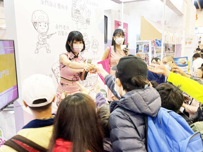 觀光處副處長許績鑫表示,金門館除了宣傳秋冬遊金門活動,還邀請網紅糖糖來宣傳金門目前最夯、最絕美的「金色寧境金門海洋藝術季」,最吸睛的「來金旅遊送旅遊振興券、抽金牌」活動及最搶手「二○二二年金門馬拉松」活動,金門要用滿滿的各種觀光活動滿足所有旅客。