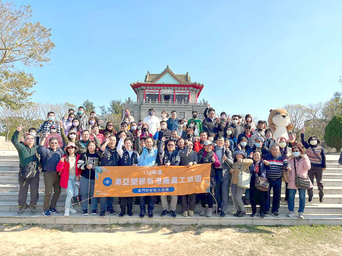 南亞新港廠福委會主任委員林育正表示,金門有「海上公園」的美譽,員工非常嚮往這趟赴金門類出國旅遊,感受異國風情,期待看到金門人文歷史風華、久聞的戰役史蹟,一嚐金門特色美食。此趟員工旅遊相信能慰勞員工平日辛勞,提升員工對企業的向心力,創造企業與員工雙贏。