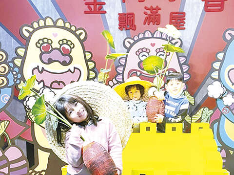 金門形象館同時搭配結合聚落守護神風獅爺和烈嶼鄉特產檳榔心芋布置的「風獅爺VS.芋頭」主題情境特展,遊客可戴上斗笠,體驗挖芋頭,還有超萌的金門觀光小天使-水獺「阿特」作伴,特別適合親子同樂,拍照打卡。