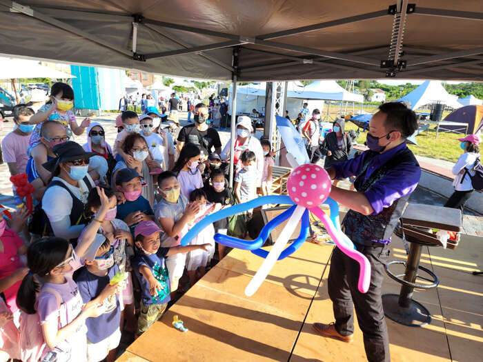 縣長楊鎮浯於昨日下午5時30分左右到現場,與金沙鎮長吳有家、議員李應文等人,一起邀請大小朋友及遊客同樂。