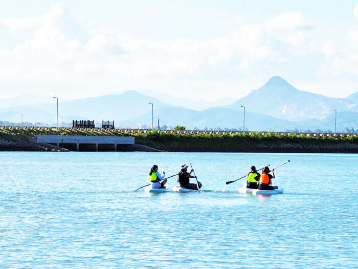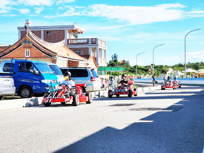 官澳灣口目前已經輔導純電卡丁車、SUP水上立槳及輕食業者進駐,朝向遊憩市集目標邁進,並與陽翟等景點串聯起東半島旅遊帶。