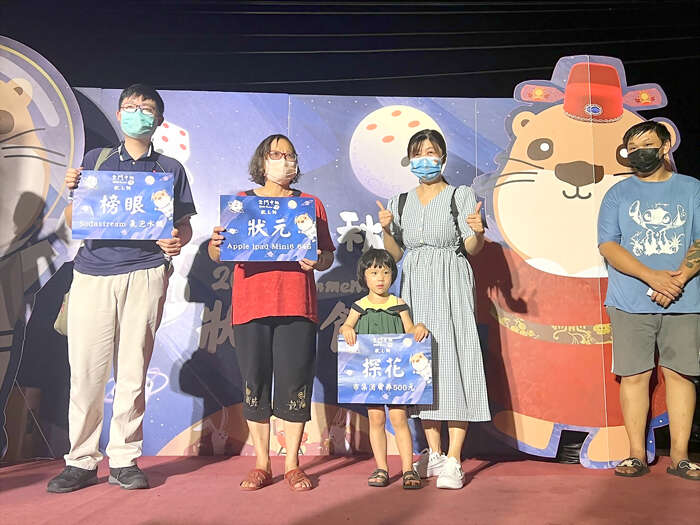 最後,壓軸登場的博狀元餅大賽,吸引民眾大排長龍報名參加海選,並經過複賽及決賽,最後由楊寶貞、許翼鈞、楊孟燕分別獲得狀元、榜眼、探花,並依序獲得頭獎Apple Ipad mini平板、氣泡水機、市集消費券500 元等好禮,堪稱昨晚最大贏家。