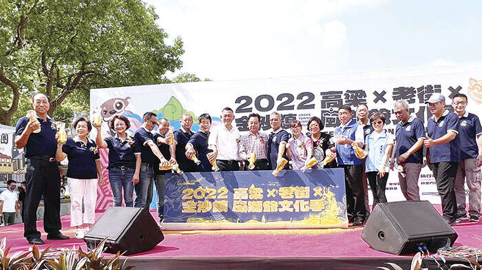 今年邁入第11屆的2022金沙鎮高粱老街風獅爺文化季,一系列活動自9月3日起陸續登場,包括高粱老街風獅爺寫生比賽、「尋找風獅爺APP」以及首次於榮湖設置之「尋風‧獺浪‧汶浦水岸裝置藝術展」,昨日上午並於沙美市區舉辦文化季主活動,在Candy金門小女孩開場表演,縣長楊鎮浯、議長洪允典、議員王秀玉、王碧珍、鎮長吳有家、主席周水土、立法委員辦公室主任林孫全、金寧鄉鄉長楊忠俊、金沙代表會副主席黃聰成、代表蔡寶愛、黃奕焮、馬自壯、呂寶玉、張成爵,里長張瀚龍、陳福林、周家才、陳賜發、沙美商圈理事長王添泉、金門縣稅務局局長董梨卿等,手捧「金沙」瓶並灑下金沙正式啟動。
