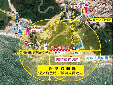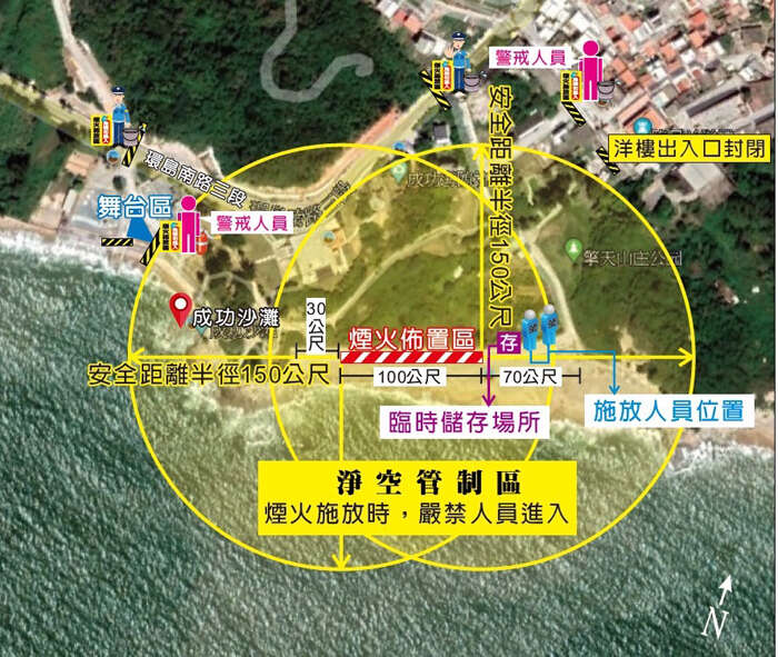 另,為確保活動的安全,煙火施放期間將實施交通管制措施。在20:50至21:10期間,成功環島南路下坡路段將暫時關閉,禁止行人和車輛通行,希望鄉親們能諒解並遵守相關安排。