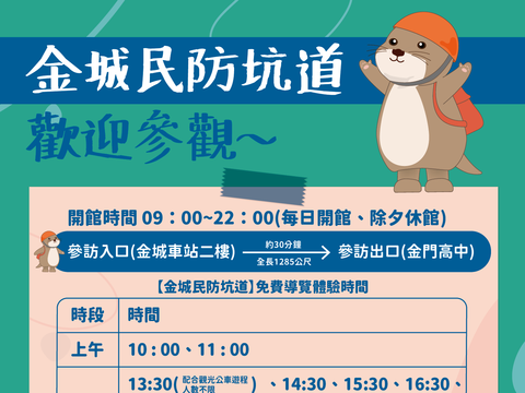 金城民防坑道景點資訊可致電觀光處洽詢,電話:082-321547或082-324174。