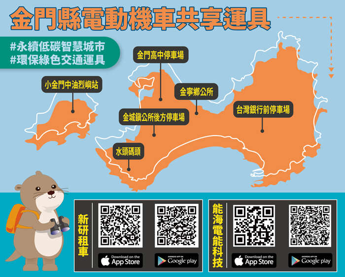 隨著共享運具逐漸普及,金門首推「電動共享運具專用停車位」,近日已完成「金城鎮公所後方停車場、金門高中停車場、金寧鄉公所停車場、金湖鎮台銀前停車場、水頭停車場、烈嶼鄉公有加油站」共6處,各設置6個電動共享機車專用停車位,共計42輛共享機車,正式上線提供服務。