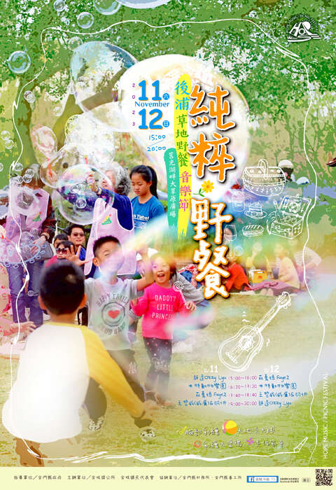 由金城鎮公所主辦的「純粹.野餐 後浦草地野餐音樂節」,將在十一月十一日(星期六)、十二日(星期日)的下午三時至晚間八時,在莒光湖畔大草原廣場舉行,主辦單位還準備了「兒童臉部彩繪」、「大地滾大球」、「彩繪大塗鴉」,以及「手作風車」等親子互動遊戲。