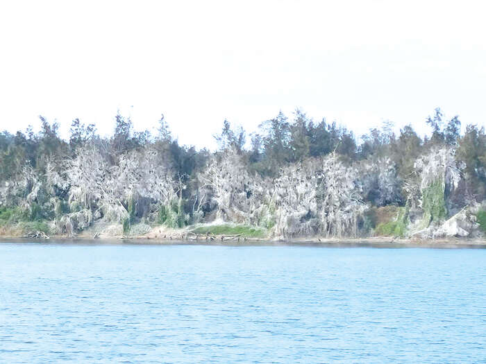金門國家公園管理處課長蘇芊遐指出,鸕鶿飛抵金門過冬的時間點,大約都是在每年十月到隔年三月,而鸕鶿高峰則多在一月左右,牠們白天在湖岸邊覓食,晚上則棲息在湖旁的木麻黃,大量的排遺便逐漸把樹給染白。